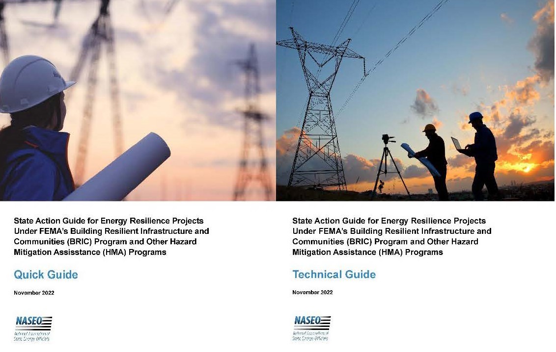 NASEO’s Quick Guide and Technical Guide for State Action Guide for Energy Resilience Projects Under FEMA’s Building Resilient Infrastructure and Communities (BRIC) Program are now available for viewing. The action guides are designed to empower State Energy Offices, State Emergency Management Agencies, key local officials, and private sector entities to work together to identify solutions to mitigate hazards to the energy sector, and pursue funding through the BRIC program and other federal resilience programs. Readers will gain a greater understanding of hazard mitigation planning for the energy sector; clarified, sequential, and user-friendly application instructions; peer tips and recommendations; and resources on a variety of subjects including cost-share, benefit-cost analysis, and project eligibility.