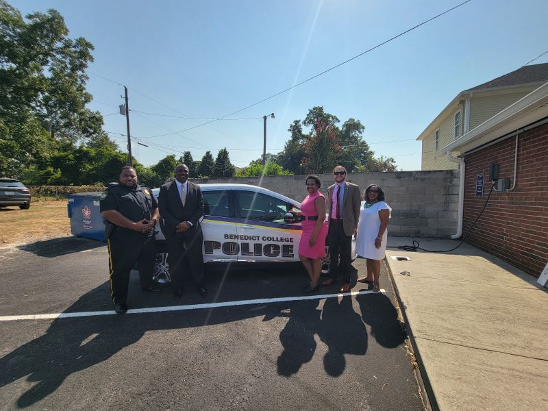 The day rounded out with a tour of local projects, guided by SCEO staff, that provided a sampling of how SEP funding furthers energy efficiency and clean transportation efforts across South Carolina. The tour began at one of the City of Columbia’s parking garages where municipal partners shared their story of using Mini-Grant funding to provide new and upgraded electric vehicle (EV) charging infrastructure in public parking facilities. Next was a visit to Benedict College, an historically Black college, that also used Mini-Grant funding to help procure an EV and charger for a clean addition to their campus police fleet. During the tour, SCEO staff pointed out Richland County School District One office buildings where energy efficiency upgrades were made possible with SCEO’s ConserFund loan program. The tour culminated at Blythewood High School’s Bengal Biodiesel Lab. SCEP and SCEO were joined by an innovative chemistry teacher, his students, high school principal, and even the District Superintendent. The Bengal Biodiesel Lab utilized Mini-Grant funds, and collaborated with other SCEO partners, to expand its chemistry laboratory which enables students to gain real-world lab experience in producing biodiesel from spent cooking oil.