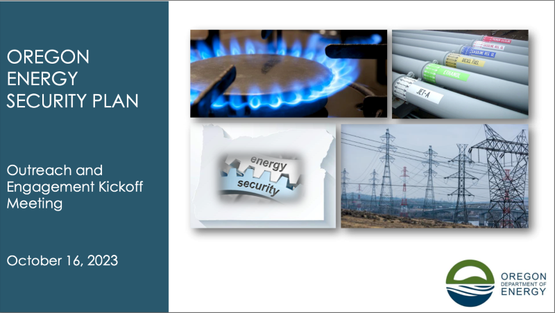 On October 16, 2023, the Oregon Department of Energy hosted an Energy Security Plan Statewide Stakeholder Kickoff webinar. In response to the State Energy Security Plan requirements set forth by the Infrastructure Investment and Jobs Act (IIJA) and Oregon Senate Bill 1567, the Oregon Department of Energy submitted a draft Energy Security Plan to the U.S. Department of Energy in September 2023 and is now embarking on a yearlong planning and outreach effort to engage all Oregonians as part of the development of the 2024 Oregon Energy Security Plan. Through a series of virtual and hybrid meetings the Oregon Department of Energy will encourage public and private partners to weigh in with feedback, relevant data, and stories to inform future iteration of their State Energy Security Plan. The hybrid event included attendees from the Oregon Public Utility Commission, Oregon Department of Emergency Management, U.S. Department of Energy’s Office of Cybersecurity, Energy Security, and Emergency Response (DOE CESER), Pacific Northwest National Laboratory (PNNL), and industry partners. The webinar recording can be accessed here and more information on the stakeholder engagement efforts can be found here.